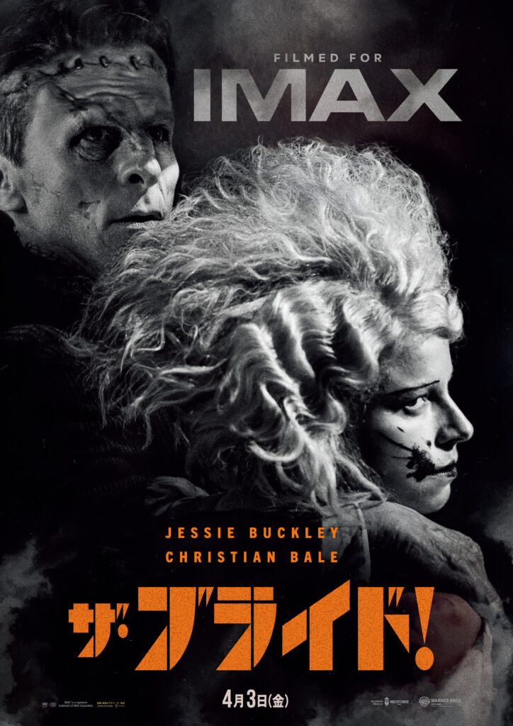あわせて解禁されたIMAX®上映ポスターは、静かな狂気を孕んだモノクロのデザインが強烈なインパクトを放つ一枚。ブライドの口元に刻まれたアイコン的な“黒い模様”が不穏に際立ち、寄り添うブライドとフランケンシュタインの瞳には決死の覚悟が宿っている。自由を奪われた二人が、腐った世界に咆哮を上げる──。その吐息、その体温、その怒り。IMAX®だからこそ到達できた、ブライドたちの鼓動が耳元で鳴り響くような圧倒的体験。あなたの常識を塗り替える痛快ロマンススリラーを、逃げ場のない特等席で体感せよ!!